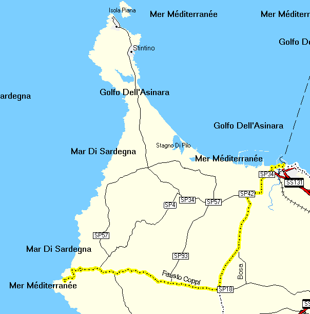 | to save tracklog space, only the route from the mine to Porto Torres, after visiting Stintino |